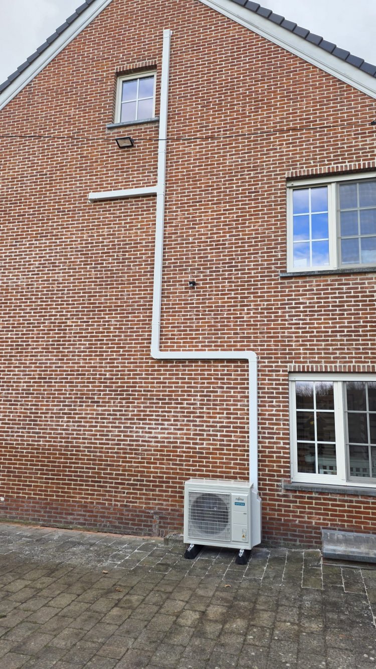 Samen met de klant bekeken we de beste posities voor zowel de binnen‑ als buitenunits. Omdat leidingen bij airco‑installaties meestal in opbouw worden geplaatst, was het belangrijk om technisch correcte en tegelijk esthetisch verantwoorde keuzes te maken. Door grondig overleg en gepaste technische overwegingen kwamen we tot een strak en visueel rustig geheel dat perfect aansluit bij de gevelstructuur en de gewenste comfortbeleving in de woning.