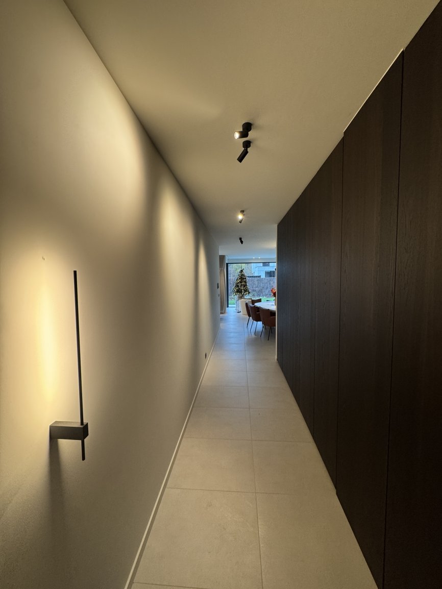 De volledige elektrische installatie en verlichting werden aangestuurd via Niko Home Control. Dankzij dit domoticasysteem geniet de klant van een intelligente en flexibele sturing van verlichting, stopcontacten en verbruik, met een hoog gebruikscomfort en optimale energie‑efficiëntie.